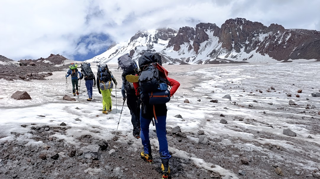 ▶ Ziua 6: Este ziua de aclimatizare activă. Urcăm pe platou, la 4250 m, facem niște cursuri de alpinism, după care revenim la Stația Meteo unde rămânem peste noapte.