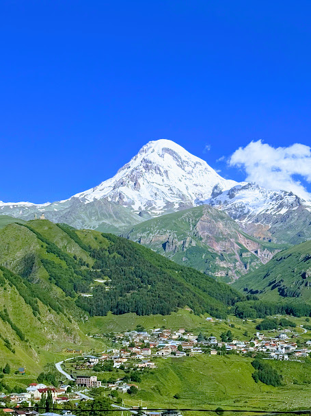 ▶ Ziua 3: Transfer spre Stepantsminda, cazare și briefing. Astfel începem a doua zi de relaxare intensă. Ne plimbăm, savurăm bucatele georgiene și urcăm până la vechea biserică Gergeti.