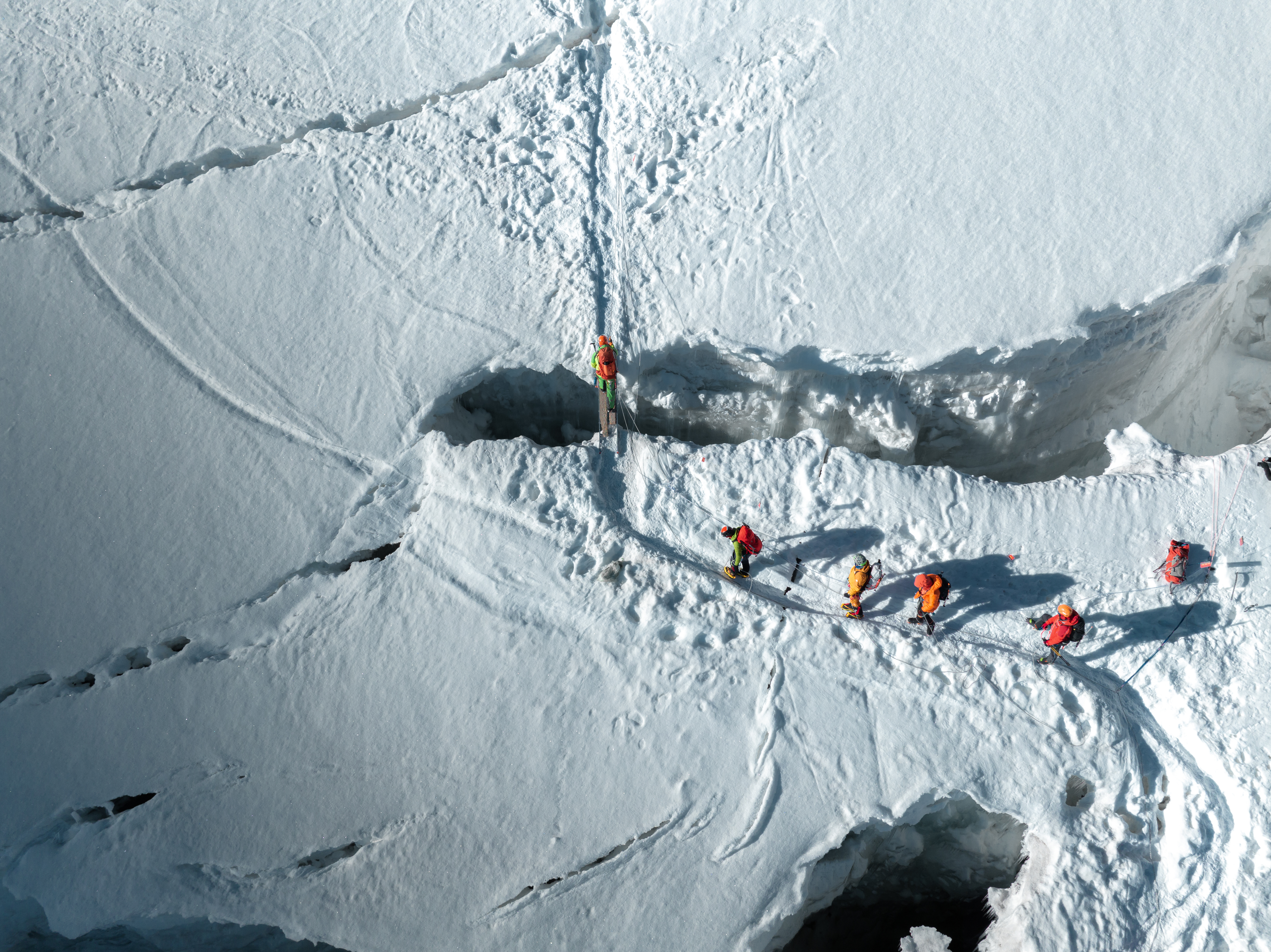 ▶ Ziua 7: Exerciții pe gheață. Pregătirea pentru ascensiune - Dimineața: exerciții pe gheață. Reamintim regulile deplasării pe ghețar, lucrul în coardă, urcarea și coborârea pe frânghie fixă, tehnici de auto-salvare și salvarea unei persoane căzute într-o crevasă. Pregătirea echipamentului necesar pentru ascensiunea către Tabăra 2 (5.300 m).