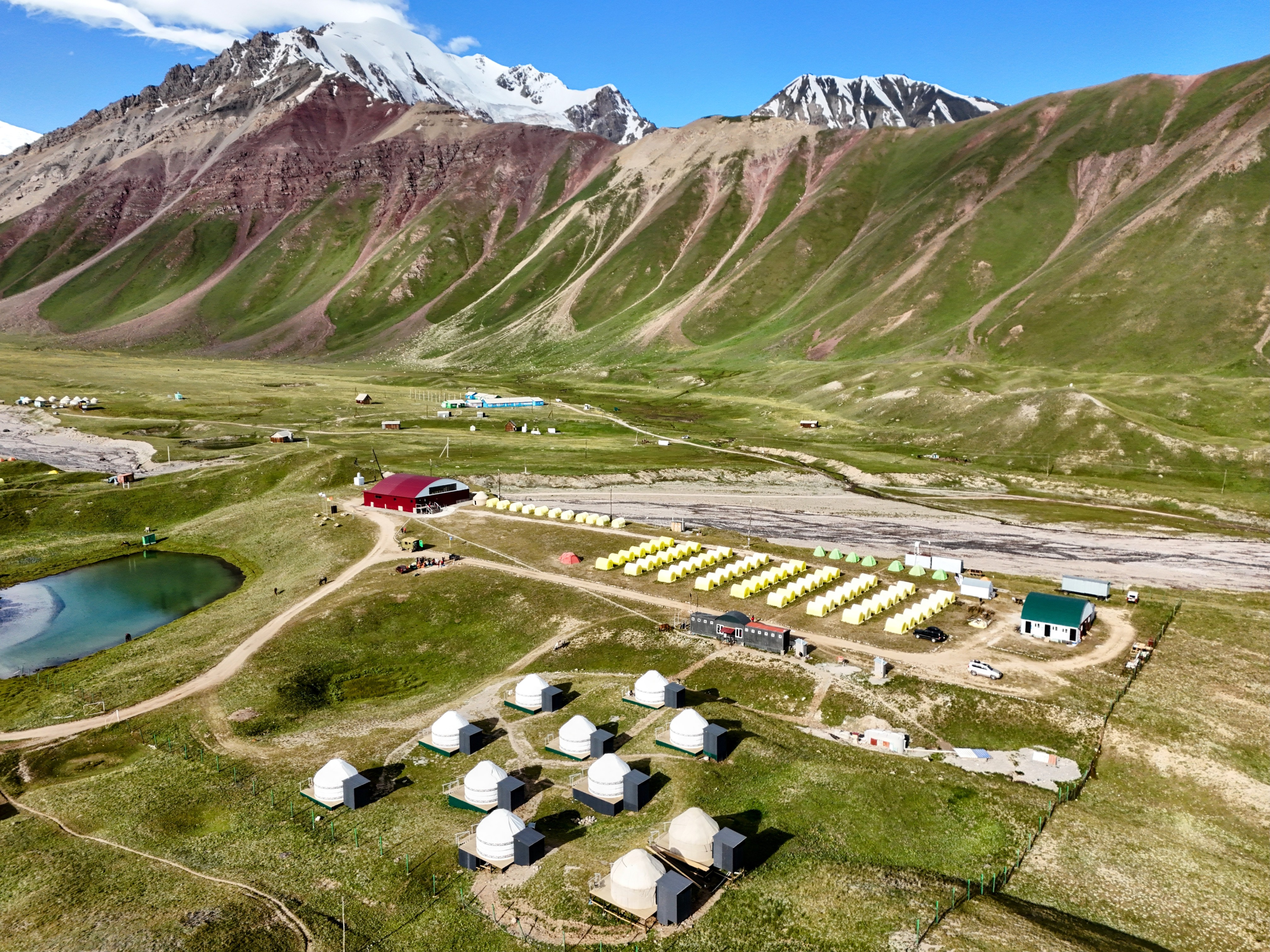 ▶ Ziua 2: Orașul Oș – Tabăra de Bază Aci̦k-Taș (3.600 m). Pornim spre Tabăra de Bază Aci̦k-Taș; drumul va dura aproximativ 5–7 ore. Ne vom bucura de peisaje pitorești și vom simți atmosfera expediției de mare altitudine care urmează. În tabără ne cazăm și primim toate informațiile necesare despre condițiile de trai și programul ascensiunii.